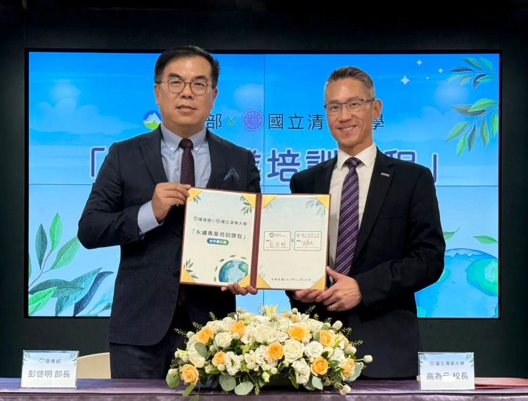 環境部表示,本次與國立清華大學合作推動永續專業培訓課程,主要合作內容包括支持清華大學開設永續相關領域的教育訓練、活動、課程及計畫;由該校提供永續相關領域的課程資源,供環境部或其他政府部門主管及永續長參加;雙方落實課程規劃的互相交流,並提供學養豐富及永續經驗紮實的師資。藉以積極因應全球氣候變遷,建立雙方合作機制,培育跨世代永續經營的人才。